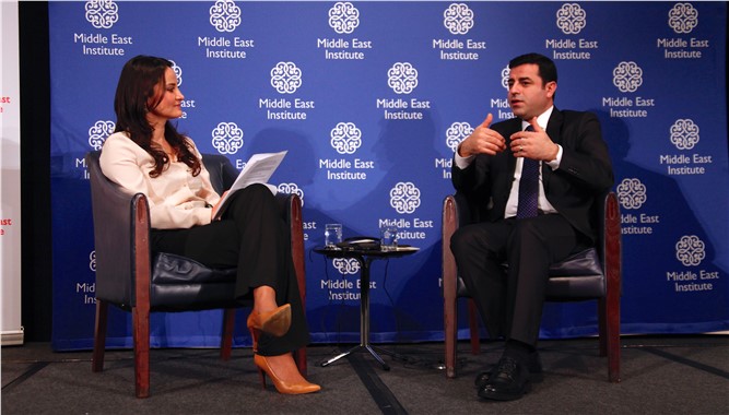 Demirtaş, Washington merkezli Ortadoğu Enstitüsü’nün (Middle East Institute) düzenlediği 6. Türkiye Konferansı'nda konuştu. Konuşmasının başında seçim döneminde yaşadıkları zorluklara değinen Demirtaş, özellikle basın üzerinde ciddi bir baskının olduğunu kaydetti. Demirtaş, “Bizim ile ilgili haber yapmak bile neredeyse suç haline geldi. Bazı gazetecilere 'Selahattin Demirtaş ile röportaj yapmak' diye suçlama yöneltildi. Bu şu anda savcılığın tutanaklarında var.” dedi.