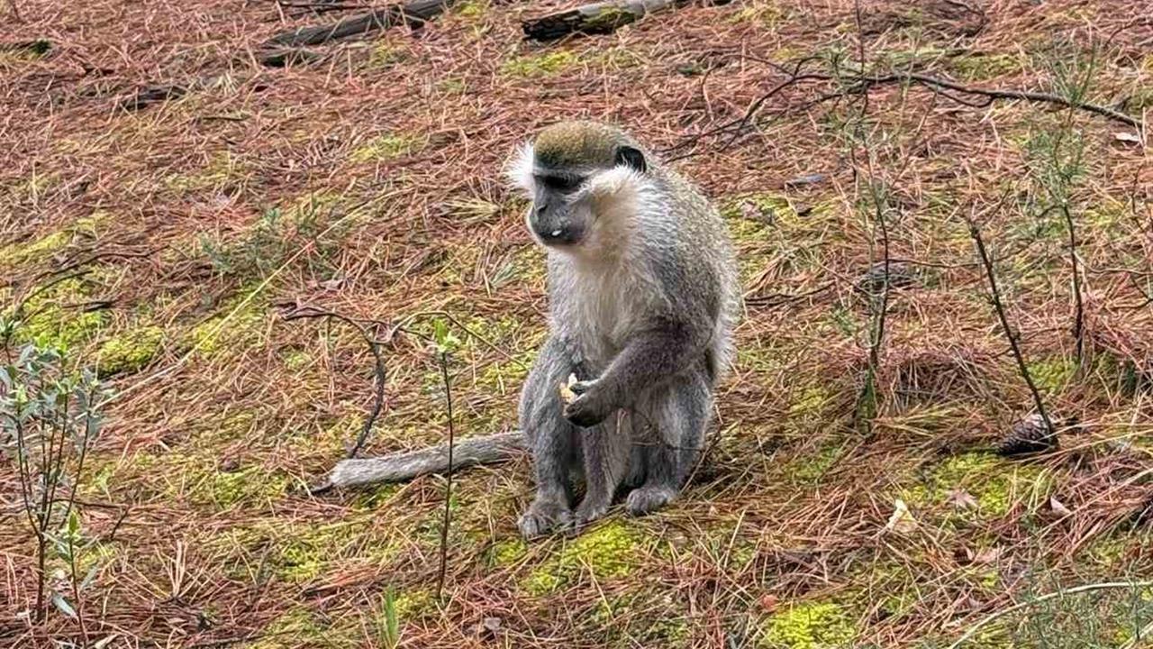Denizli Pamukkale'de mantar arayışı sırasında bir maymunla karşılaşan Nizamettin Yiğit, o anları cep telefonuyla kaydetti. Ekipler gelene kadar maymunu oyalamaya çalışan Yiğit, hayvanı doyurmayı da başardı.