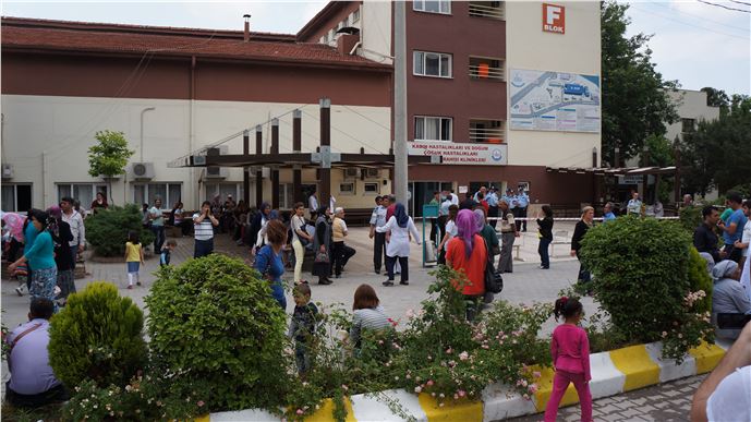 Denizli'de, Devlet Hastanesi’nin Kadın Hastalıkları ve Doğum, Çocuk Hastalıkları ve Çocuk Cerrahisi kliniklerinde yangın korkusu yaşandı. Hastanenin arşiv bölümünden çıkan duman sebebiyle klinikler acilen boşaltıldı. Olay yerine gelen itfaiye, durumu kontrol altına aldı. Hastaneden çıkan bir kadın, içeride yangın olduğu bilgisinin yayılmasıyla panik yaşandığını belirtti. Bir başka hasta ise, dışarıda olduğunu ve et gibi bir koku aldığını ifade ederek, durumu fark ettiklerinde hemen dışarı çıktıklarını söyledi. Denizli Kamu Hastaneleri Birliği Genel Sekreteri Berna Öztürk, arşiv bölümünde yoğun duman oluşması nedeniyle yangın tahliye işlemlerinin başlatıldığını bildirdi. İlk tespitlere göre, havalandırma sistemindeki toz veya sünger malzemesinin tutuşması sonucu duman çıktığı belirtiliyor. Olayın nedenleri araştırılıyor ve konuyla ilgili soruşturma başlatıldı.