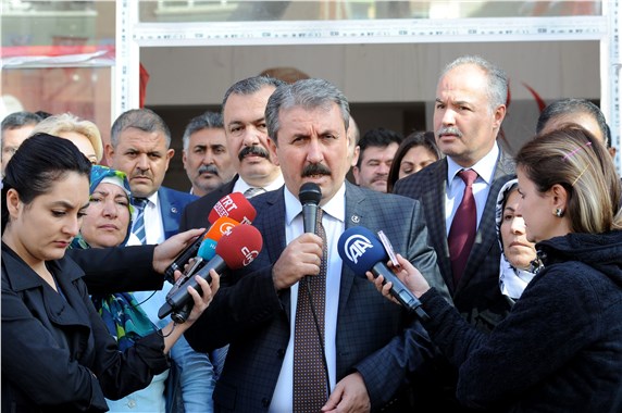 ‘Başbakan Davutoğlu, saldırı, seçimlerde AK Parti’nin tek başına iktidarını engellemek için yapıldığını söyledi’ diyen BBP lideri, şu ifadeleri kullandı: ”Eğer biz bu saldırıları böyle değerlendirirsek, Sayın Başbakan, ‘AK Parti’nin iktidarını engellemek için yapıldı’ derse, bir başka siyasi parti genel başkanı da çıkıp ‘AK Parti’yi iktidar yapmak için yapıldı’ derse, bir başka parti de ‘bizi barajın altına yapıldı’ derse bu saldırıyı gerçekleştirenler amacına ulaşmış olur. Bunlar yapmak istediği bir taşla 3 kuş vurmaktır. Sayın Başbakan bu saldırı, sizin dediğiniz gibi bir partinin iktidarını engellemek için yapılmamıştır. Bu saldırı Türkiye Cumhuriyeti’ne yapılmıştır. Hep birlikte, saldırıyı gerçekleştirenlerin yüzüne çarpacağız ki, ancak oradan buradan birliğimizi ve kardeşliğimizi muhafaza ederek çıkabiliriz. Ama bunu sen, ben kavgasına, parti kavgasına dönüştürürsek o zaman burada ülkemiz de kaybeder milletimiz de kaybeder. Hepimiz aynı gemideyiz. Bu gemi su alırsa, hepimiz bundan zarar görürüz.”