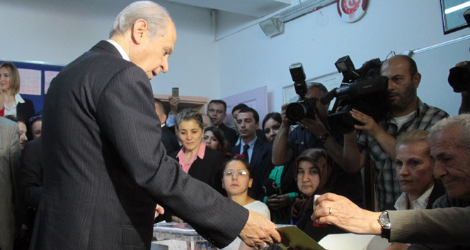 MHP Lideri Bahçeli, saat 12.00'de Anıttepe Ortaokulu'na gelerek milletvekili genel seçimi için oyunu kullandı. Nüfus cüzdanının görevlilerce kontrol edilmesinin ardından 1311 numaralı sandıkta oyunu veren Bahçeli, basın mensuplarının yoğun ilgi gösterdiği bu süreçte açıklamalarda bulundu.