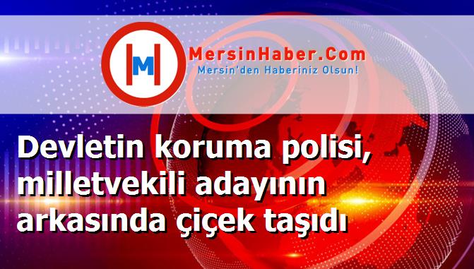 Devletin koruma polisi, milletvekili adayının arkasında çiçek taşıdı