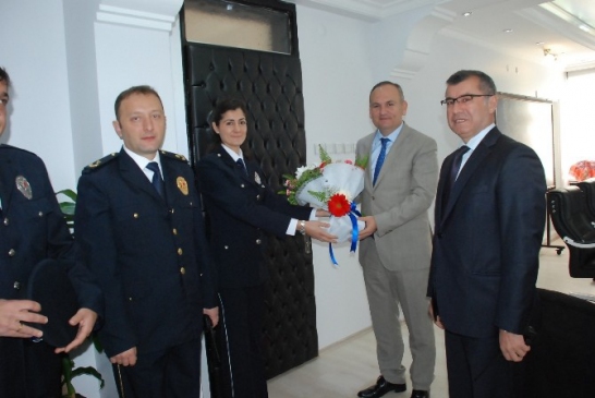Didim'de Emniyet Müdürü Gürhan Aytekin, Kaymakam İskender Yönden'i ziyaret ederek Polis Haftası etkinlikleri kapsamında kutlama gerçekleştirdi.
