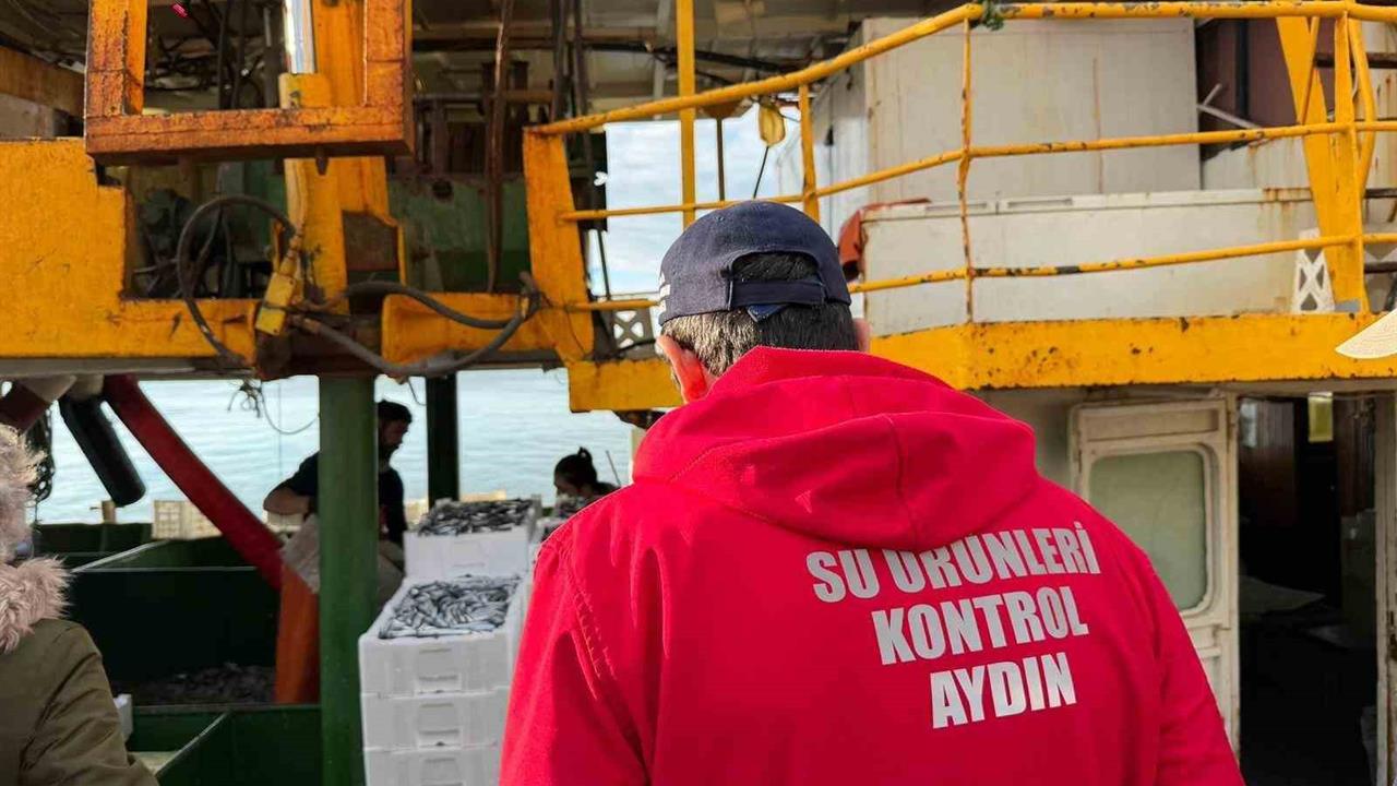 Didim'de gerçekleştirilen denetimlerde hamsi kotası uygulaması kontrol edildi.