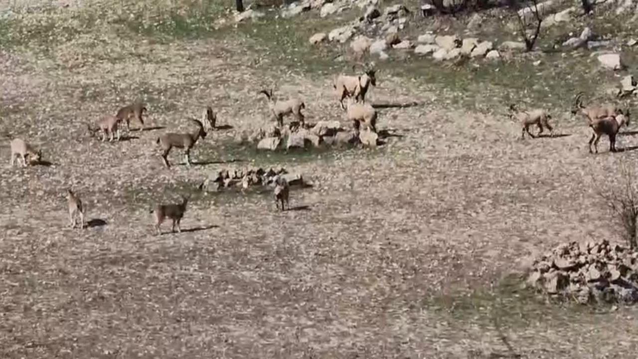 Diyarbakır’ın Çermik ilçesinde, nesli tükenme tehlikesi altında bulunan dağ keçileri, Saltepe Mahallesi’nde sürü halinde görüntülendi. Bu anları cep telefonuyla kaydeden Selim Toprak, "Tarlada çalışırken uzaktan dağ keçisi sürüsünü gördüm. Bu kadar kalabalık bir sürüyü ilk kez gördüm" dedi. Doğal yaşam alanlarında sık sık karşılaşılan dağ keçileri, bölgedeki yaban hayvanları arasında dikkat çekiyor.