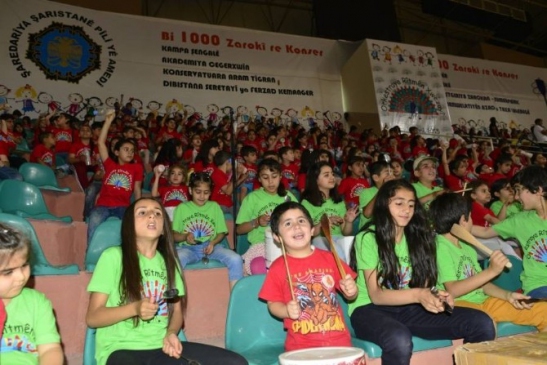 Diyarbakır Merkez'de, Büyükşehir Belediyesi Kültür ve Turizm Daire Başkanlığı'nın Aram Tigran Kent Konservatuvarı, bin çocukla doğal ritim orkestrası oluşturarak bir konser düzenledi. Konsere, Şengal'den gelen 300 çocuk ile Cegerxwin Kültür ve Sanat Merkezi ve Sosyal Hizmetler Çocuk Destek Merkezi'nden çocuklar katıldı. Konservatuvar eğitmeni Şerko Kaniwar’ın yönetimindeki orkestra, Seyrantepe Kapalı Spor Salonu'nda sahne aldı. Konser alanında çocuklar, aileleri ve yerel yöneticiler de yer aldı.