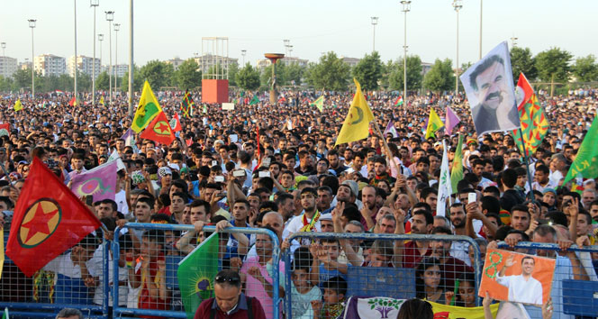 Diyarbakır'da HDP'nin barajı geçmesi nedeniyle Nevruz alanında yapılan kutlamalara katılan on binlerce kişi, coşkuyla etkinlikte yer aldı. Saat 17.00'de başlayan kutlamalar öncesinde geniş güvenlik önlemleri alındı. Alan, polis ekipleri ve TOMA'larla çevrelendi.