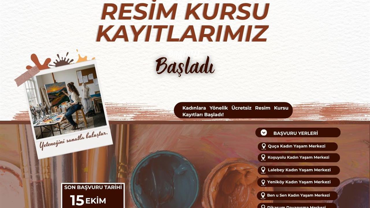 Kadın ve Aile Hizmetleri Dairesi Başkanlığı, "Yeteneğini sanatla buluştur" sloganıyla başlattığı resim kursu için kayıt almaya başladı. Kurslara katılım için son başvuru tarihi 15 Ekim olarak belirlenirken, kayıt işlemleri Quça, Koşuyolu, Lalebey, Yeniköy, Ben u Sen Kadın Yaşam Merkezleri ve Dikasum Dayanışma Merkezi üzerinden gerçekleştirilebilecek. Bu kursun amacı, katılımcıların sanata olan ilgilerini artırmak ve sosyal-kültürel etkileşim ortamı sağlamaktır.