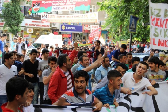 Diyarbakır'da yüzlerce Yeni Diyarbakırspor taraftarı, Türkiye Futbol Federasyonu'na karşı yürüyüş düzenledi. Taraftarlar, verilen penaltı kararına tepki göstererek, protesto etti.