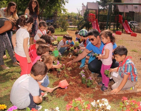 Döşemealtı Belediyesi işbirliğiyle düzenlenen etkinlikte, Beşparmak Kreşi'nin anaokulu grubu çocukları, Yeşilbayır Mahallesi'ndeki parkta rengarenk çiçekler dikelerek çevre bilinci oluşturdu.