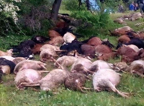 Olay, Dursunbey’de Yassıören kısras mahallesi yakınındaki merada meydana geldi. Merada otlayan yüzlerce küçükbaş hayvanın bulunduğu alana yıldırım düştü. Bu esnada çoban Yusuf Gücük, hayvanların yakınında bulunmasına rağmen şans eseri yara almadan kurtuldu. Ancak, bu talihsiz olay sonucunda 45 küçükbaş hayvan telef oldu.