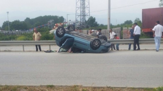 Düzce D-100 Karayolu Küçük Melen mevkiinde meydana gelen trafik kazasında bir otomobil ters döndü, 2 kişi hafif yaralandı.