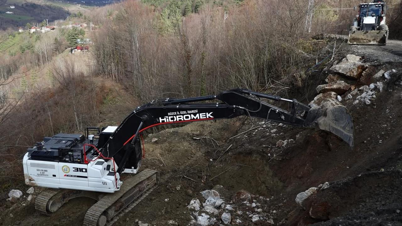 Düzce İl Özel İdaresi Yol ve Ulaşım Hizmetleri Müdürlüğü ile Kaynaşlı İlçe Özel İdare Müdürlüğü ekipleri, heyelan nedeniyle zarar gören yol güzergahında zemin güçlendirme, taş tahkimatı ve dolgu işlemlerini başarılı bir şekilde tamamladı. Bu kapsamda, yapılan uygulamalarla birlikte yol platformu güvenli hale getirilerek, ulaşımın aksamadan sürdürülmesi sağlandı.