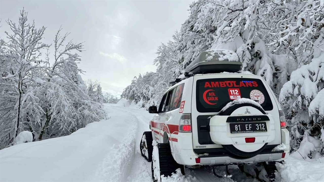 Düzce ilinin Yığılca ilçesinde, özellikle yüksek kesimlerde etkili olan kar yağışı, birçok köyde olduğu gibi Tuğrul köyünde de yolları kapattı. Bu durum, köyde yaşayan 95 yaşındaki bir hastanın acil yardım almasını zorlaştırdı. Edinilen bilgilere göre, Düzce İl Sağlık Müdürlüğü’ne bağlı 112 Acil Ambulans Servisi, hasta için paletli ambulans gönderdi. Yığılca ilçe merkezinden hareket eden paletli ambulans ekibi, yer yer 60 santimetreyi bulan karla kaplı yollara rağmen, zorlu hava ve yol şartlarını aşarak hastanın bulunduğu köye ulaştı.