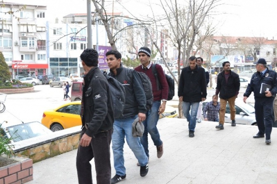Edirne'nin Keşan ilçesinde, polis ekipleri tarafından durdurulan iki ticari takside, yasa dışı yollarla yurtdışına gitmeye çalışan 8 Pakistan uyruklu göçmen ele geçirildi. Edinilen bilgilere göre, Keşan İlçe Emniyet Müdürlüğü Kaçakçılık ve Organize Suçlarla Mücadele Grup Amirliği ekipleri, İstanbul yönünden gelen taksileri Keşan Dörtyol Kavşağı'nda durdurdu. Yapılan inceleme sonucunda, göçmenler ile taksi şoförleri Keşan İlçe Emniyet Müdürlüğü'ne götürüldü. Şoförler ifadeleri alındıktan sonra serbest bırakıldı, göçmenler ise Edirne Yabancılar Şubesi'ne sevk edildi. Olayla ilgili başlatılan soruşturma sürmektedir.