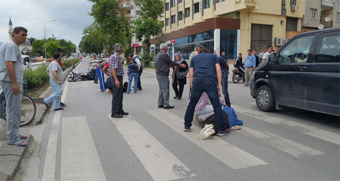 Edirne Merkez'de gerçekleşen trafik kazasında, Uğur A. (24) yönetimindeki 22 PC 550 plakalı motosiklet, Ayşekadın Talatpaşa Caddesi'nde yolun karşısına geçmeye çalışan 65 yaşındaki Uzile Ç. isimli kadına çarptı. Kaza sonucunda motosiklet devrilerek sürüklendi ve bu esnada hem sürücü hem de yaya yaralandı.