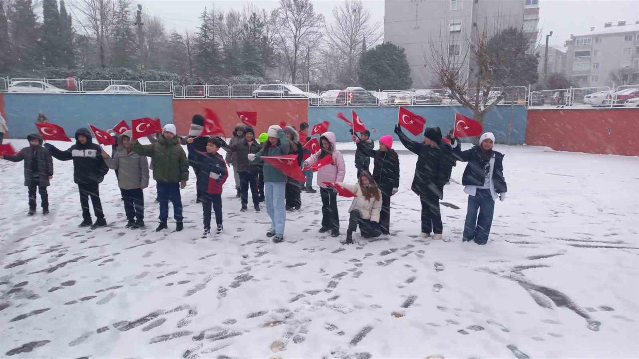 Kar tanelerinin düşmesiyle birlikte, dalgalanan bayraklar, beyaza bürünen okul bahçesinde bayrak sevgisinin sıcaklığını gözler önüne serdi. Öğrencilerin coşkusu, çevredeki izleyiciler arasında da büyük bir heyecan yarattı. Kar yağışı altında gerçekleştirilen bu etkinlik, birlik ve beraberlik duygusunu pekiştirdi.