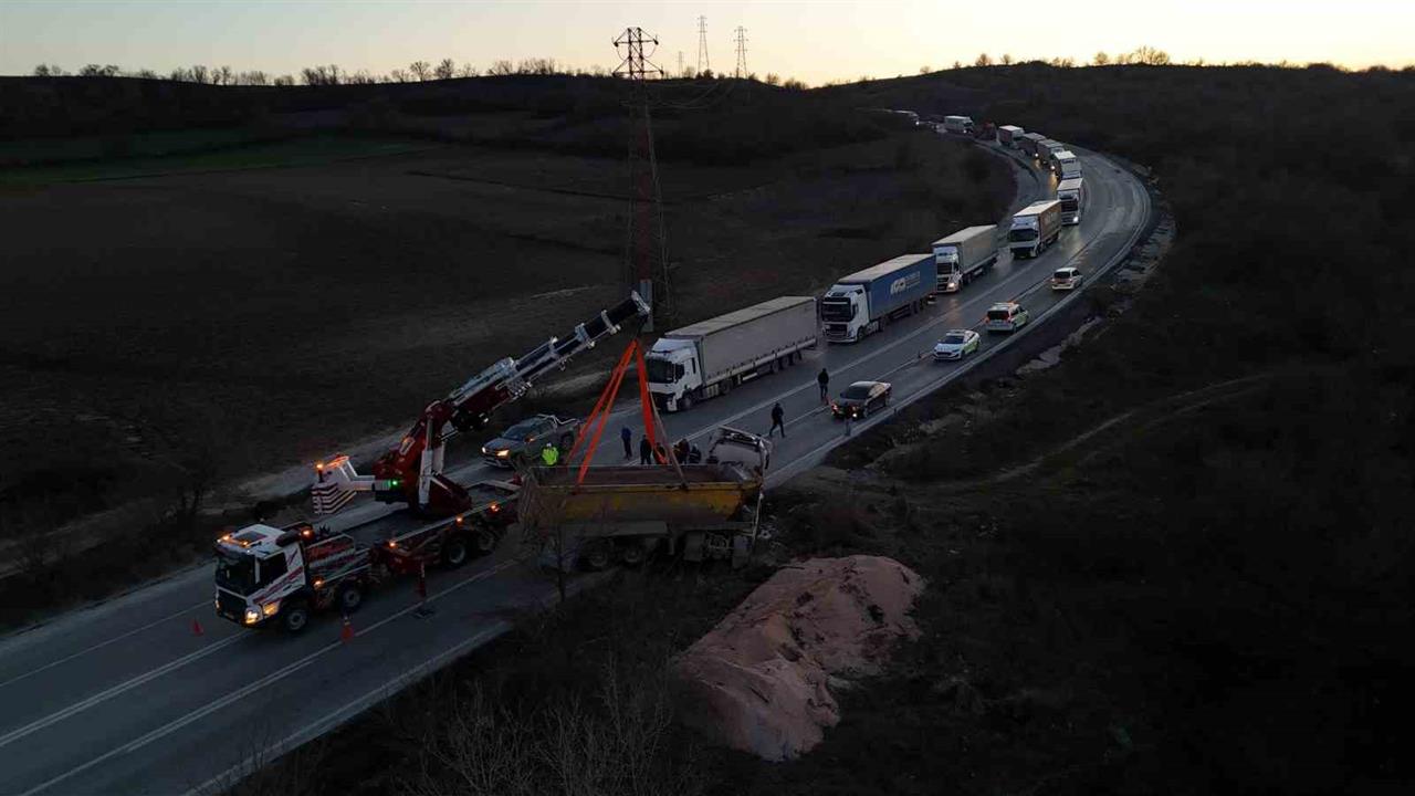 Kazanın ardından, devrilen hafriyat kamyonunun kurtarma işlemleri sırasında, Bulgaristan’a açılan Hamzabeyli Sınır Kapısı yönüne giden ihracat tırları ile Edirne yönünde seyreden araçlar yolda uzun kuyruklar oluşturdu. Hafriyat kamyonunu kaldırmak için vinç yardımıyla yapılan çalışmalar sonucunda, uluslararası yol yeniden trafiğe açıldı. Olayla ilgili olarak jandarma ve polis ekipleri inceleme başlatırken, kazanın nedenleri üzerinde durulmakta. Ayrıca, sürücünün sağlık durumu hakkında henüz bir bilgi verilmedi.