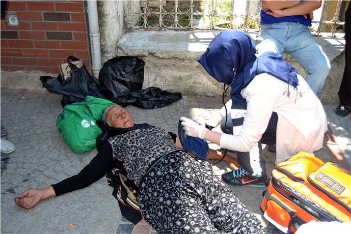 Aracın kapısına kadar gelen Bulgar kadın, yeniden yere yığıldı. Kadın, güçlükle araca alınarak bölgeden uzaklaştırıldı.