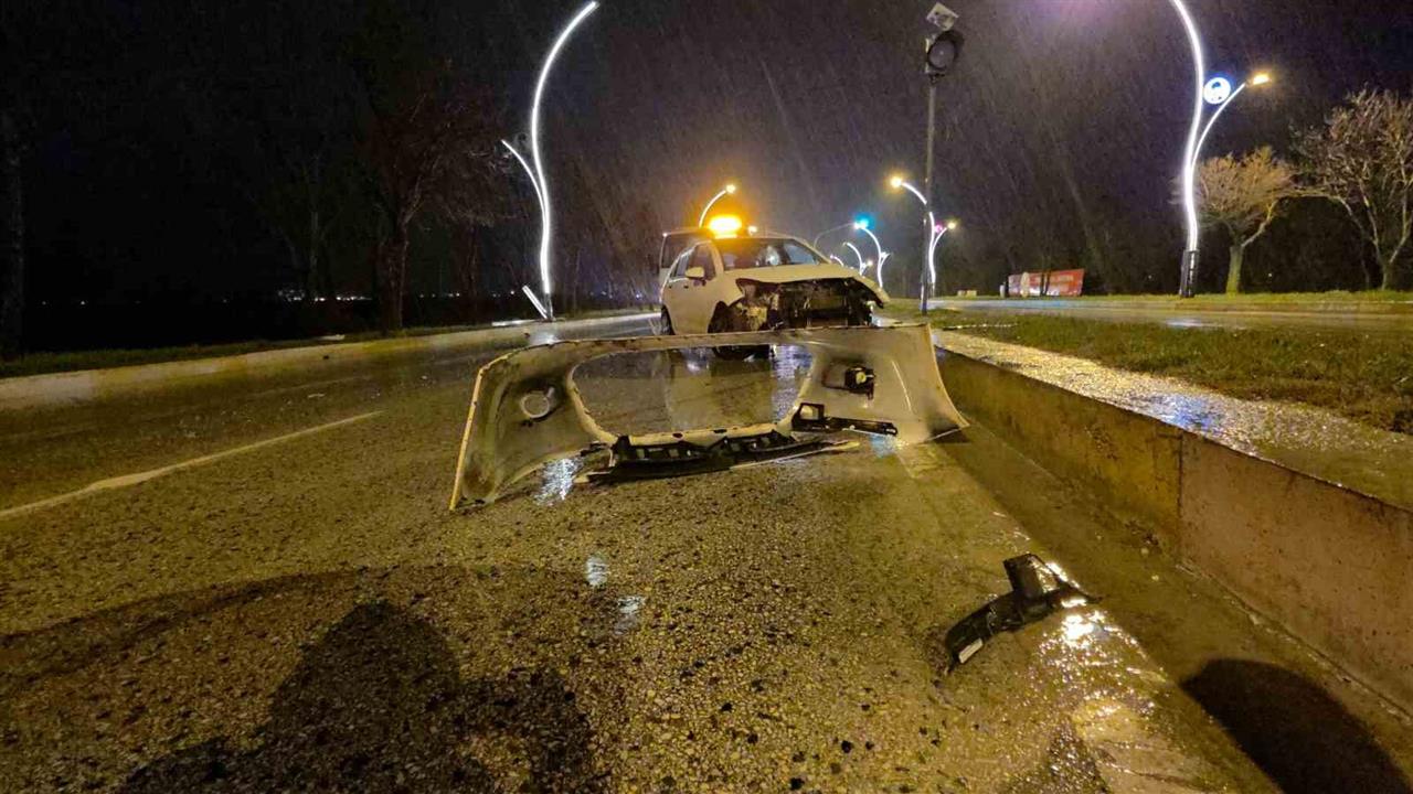 Edirne'nin Atatürk Bulvarı'nda saat 21.30 sıralarında seyir halinde olan 22 AAV 1** plakalı otomobil, sürücüsünün yolda biriken suyu fark edememesi sonucu kontrolden çıktı. Araç, önce yol kenarındaki aydınlatma direğine çarptı, ardından orta refüje vurarak durabildi.