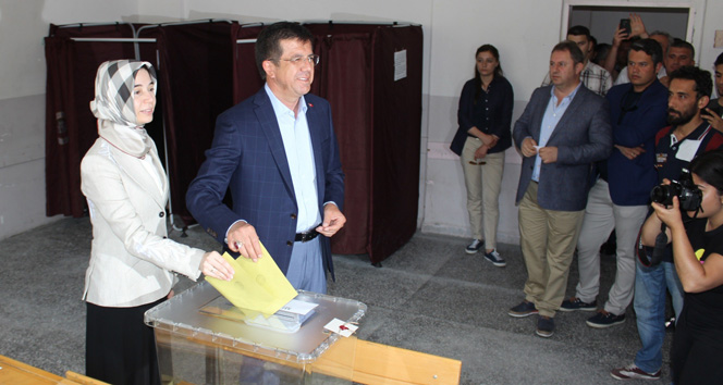 Bakan Zeybekci, oyunu Atatürk Meslek ve Teknik Anadolu Lisesi'nde 1079 numaralı sandıkta kullandı. Eşi ve çocuklarıyla birlikte sandığa giden Zeybekci, vatandaşlarla kısa sohbetler de yaptı. Oyunu kullandıktan sonra gazetecilere açıklamalarda bulunan Bakan Zeybekci, seçimlerin hayırlı olmasını dileyerek, "Demokrasi için tek karar makamı olan millete gidiyoruz" ifadelerini kullandı.