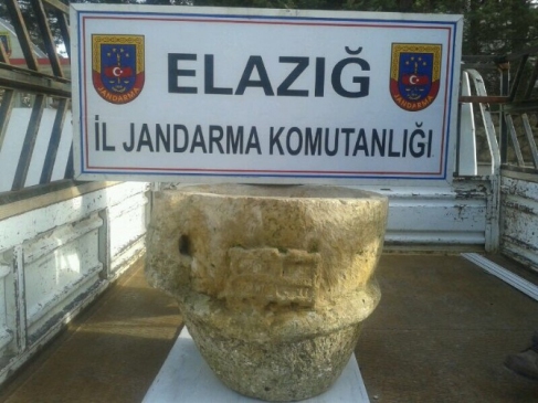 Elazığ Baskil ilçesinde jandarma ekipleri, Roma dönemine ait imparatorun özel eşyalarını taşıyan hayvan figürlü bir taşı ele geçirdi. Olayla ilgili olarak B.G. ve A.B. isimli şüpheliler gözaltına alındı.
