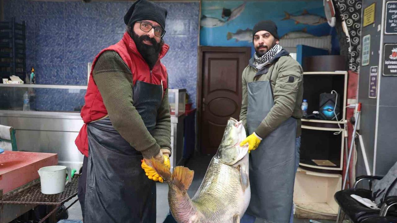 Elazığ'ın Palu ilçesinde balıkçılar tarafından Murat Nehri'nde yakalanan dev turna balığı, 78 kilogram ağırlığı ve 1 metre 71 santimetre uzunluğundaki boyuyla dikkatleri üzerine çekti. İki kişinin zor taşıdığı balık, balıkçıların işlettiği bir işletmeye götürülerek satışa çıkarıldı. Balık, et halinde kilosu 500 liradan alıcılarını bekliyor.
