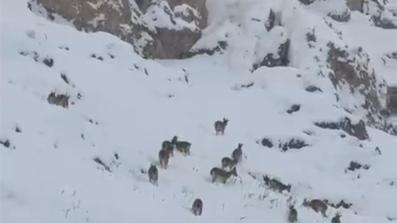 Elazığ Palu'da Kar Üzerinde Otlayan Dağ Keçileri Sürü Halinde Görüntülendi