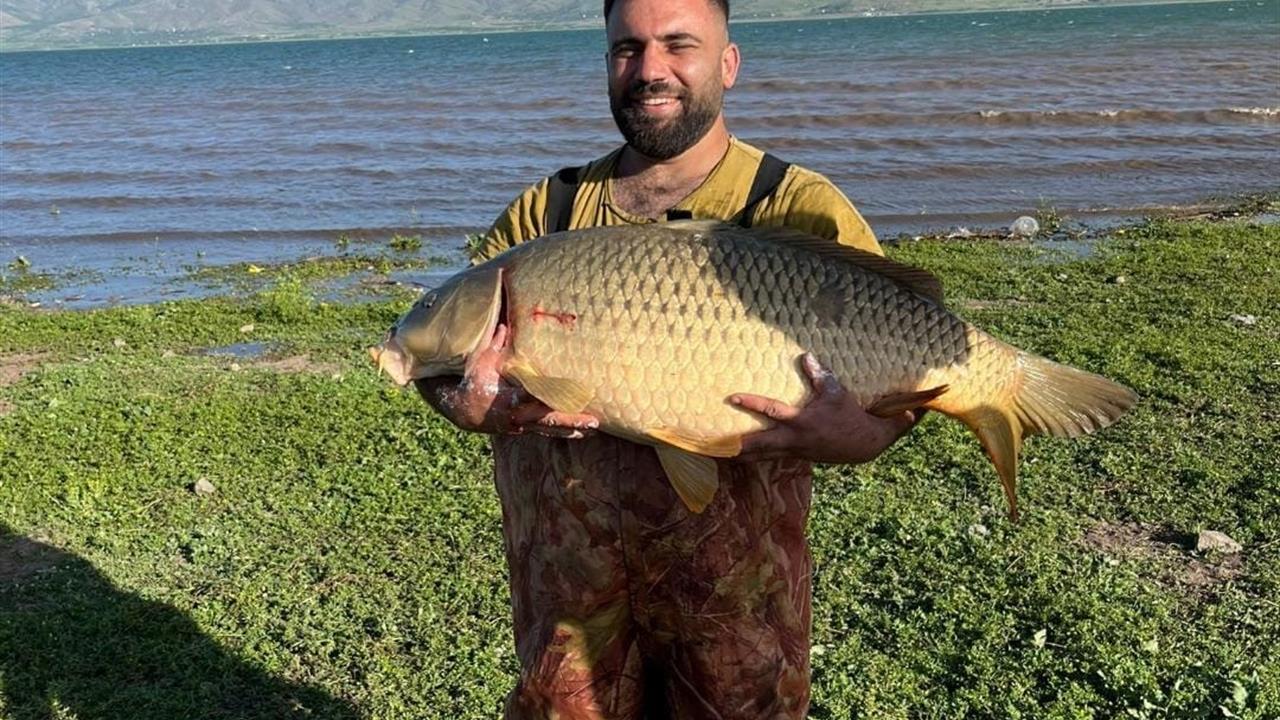 Elazığ’da amatör bir balıkçı, Keban Barajı'nın Güzelyalı köyü mevkiinde 32 kiloluk dev bir sazan balığı yakaladı. Yakaladığı balığı kıyıya çıkaran balıkçı, ardından fotoğrafını çekerek sosyal medya hesaplarında paylaştı. Bu ilginç av, görenlerin dikkatini çekti.