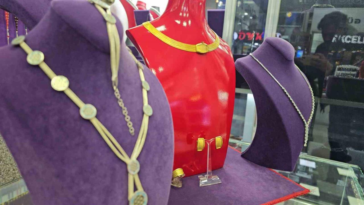 Elazığ'da düğün sezonunun açılmasıyla birlikte kuyumculuk sektöründe dikkat çeken yeni ürünler tanıtıldı. Kentte ilk kez 925 ayar gümüş ve altın kaplama Trabzon hasır setleri satışa sunulmuş durumda. Bu ürünler, tamamen el emeği ile üretiliyor ve takı seti, gerdanlık, bilezik, küpe ve yüzük gibi çeşitli seçenekler içeriyor. Kadınlar tarafından makine kullanılmadan hazırlanan bu özel takılar, özellikle evlenecek çiftler arasında yoğun ilgi görüyor. Trabzon hasırı altın kaplama gümüş setlerinin fiyatları ise 49 bin liradan başlayarak farklı fiyat aralıklarında satışa sunuluyor.