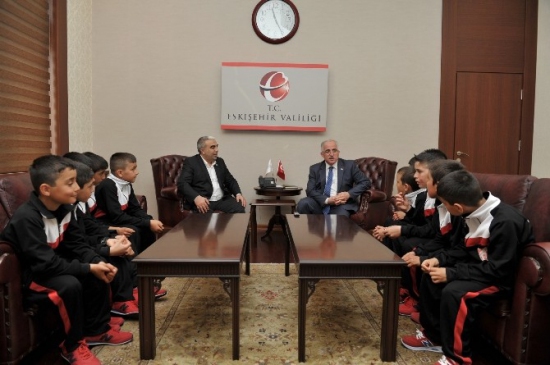 Belçika'nın Crossing Schaerbeek Kulübü tarafından organize edilen bir turnuvaya katılacak olan Emirdağspor'un U10 takımı futbolcuları, Emirdağ Belediye Başkanı Uğur Serdar Kargın, Emirdağspor Kulüp Başkanı Kadir Karataş ve antrenörleriyle birlikte Eskişehir Valisi Güngör Azim Tuna'yı makamında ziyaret etti. Ziyaret sırasında Vali Tuna, çocuklara turnuvada başarılar diledi ve sporun yanı sıra eğitimlerine de önem vermeleri gerektiğini söyledi. Vali Tuna, “İyi bir eğitim almanın yanı sıra spor yapmaya devam edin. Spor, eğitim hayatınızı engellemesin” ifadelerini kullandı. Ayrıca, Eskişehirspor'un önemli bir takım olduğunu belirterek çocuklardan Eskişehirsporlu olmaları için söz vermelerini istedi. Emirdağspor'un böyle büyük bir organizasyona katılmasının gurur verici olduğunu belirten Belediye Başkanı Kargın, Eskişehir'de 100 binin üzerinde Emirdağlının yaşadığını ve turnuvanın çocukların sporla ilgisini artırma hedefi taşıdığını aktardı.
