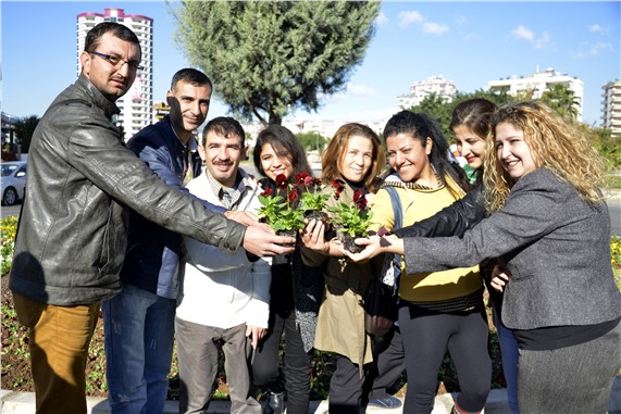 Barbaros Caddesi Akademi Hastanesi kavşağında yapılan peyzaj çalışmasının ardından renklenen kavşakta, kursiyerler kendi yetiştirdikleri süs bitkileri ile poz vererek, hatıra fotoğrafı çektirdi.