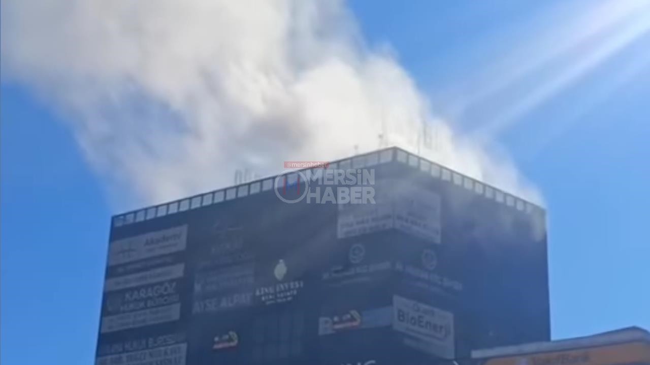 Mersin’in Erdemli ilçesinde iş merkezi olarak kullanılan bir apartmanın çatısında henüz belirlenemeyen nedenle yangın çıktı.