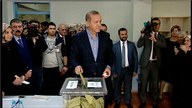 Cumhurbaşkanı Erdoğan, Kısıklı'daki evinin yakınında bulunan Saffet Çebi Ortaokulu'na eşi ve kızı ile birlikte oyunu kullandı. Oyunu kullandıktan sonra gazetecilerin karşısına geçen Erdoğan, yaklaşık 54 milyon yurttaşın sandıklara gitmekte olduğunu belitti.