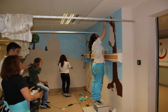 Projeye 16 öğrencinin katıldığını aktaran Erdemir Güzel Sanatlar Lisesi Resim öğretmeni Sevinç Yıldız Tanal, poliklinik duvarlarındaki çalışmalar tamamlandıktan sonra çocuk doktorlarının odalarında da resim çalışmaları yapmayı planladıklarını ifade etti.