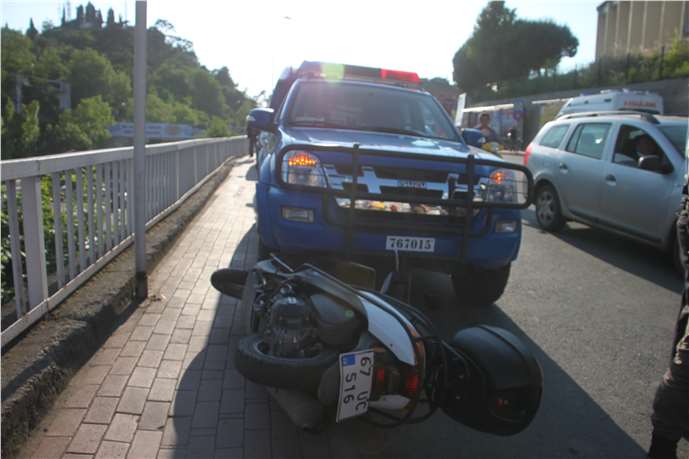 Ereğli'nin Müftü Mahallesi'nde meydana gelen kazada, 29 yaşındaki sürücü İsmail Korkut Kumaş, sollama yaparken motosikletin kontrolünü kaybetti. Başını yere çarpan sürücü, devrilen motosikletinin 26 metre sürüklendikten sonra park halindeki bir Jandarma aracına çarparak durabildi. Olay yerine gelen sağlık ekipleri, Kumaş'a ilk müdahaleyi yaptıktan sonra özel hastaneye kaldırdı. Burada durumu ağırlaşan sürücü, Ereğli Devlet Hastanesi'ne sevk edildi. Yaralı sürücünün kollarında ve vücudunda yaralanmalar olduğu öğrenildi. Öte yandan, kaza anı bir iş yerinin güvenlik kamerasına yansıdı. Görüntülerde sürücünün sollama sırasında düşmesi ve motosikletinin sürüklenerek Jandarma aracına çarpması net bir şekilde görüldü. Polis, kaza ile ilgili soruşturma başlattı.
