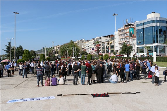 Eğitim İş Ereğli Temsilciliği ve Eğitim Sen Ereğli Temsilciliği tarafından 10 Ekim Cumartesi günü Ankara’da yaşanan terör saldırısını kınamak ve barış çağrısı yapmak amacıyla eylem düzenlendi. Çağdaş Yaşamı Destekleme Derneği, Cemevi Kültür Derneği, Atatürkçü Düşünce Derneği, Ereğli Hukukçular Derneği, gibi sivil toplum örgütlerinin destek verdiği eyleme CHP Zonguldak Milletvekili Ünal Demirtaş, CHP milletvekili adayı Buket Müftüoğlu, CHP Ereğli İlçe Başkanı Hayrettin Kartal, sivil toplum kuruluşu temsilci ve üyeleri katıldı.