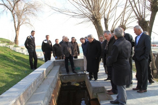 Erzincan Belediye Başkanı Cemalettin Başsoy, Ekşisu mesire alanında gerçekleştirilen çalışmaları yerinde inceledi. Ekşisu bölgesinde, Sütotu rekreasyon alanında yürütülen çalışmalarla birlikte, mesire alanında da tadilat ve ağaçlandırma faaliyetleri sürdürülüyor. Ayrıca bölgede yeni yürüyüş yolları ve seyir terasları ile köprüler inşa ediliyor. Çalışmaları görmek üzere bölgeye giden Başkan Başsoy'a Erzincan Valisi Süleyman Kahraman, Eyüp Belediye Başkanı Remzi Aydın ve Belediye Başkan Yardımcısı Karabey Atıcı eşlik etti. 180 bin m² alana sahip olan Ekşisu mesire alanındaki çalışmaların en kısa sürede tamamlanması hedefleniyor. Başkan Başsoy, "Mesire alanında bulunan havuzun ve göletin suyunu tahliye ederek, havuzun temizliğini sağladık. Ayrıca 40 bin m²'lik yeni mesire alanını da kullanıma sunduk. Burada 750 araçlık otopark da hizmete açılacak. Ekşisu'da yapılan köklü çalışmaların yanı sıra, duvarların ve yolların yenilenmesi gibi detaylı işler de yürütülüyor. Gece gündüz çalışan tüm ekip arkadaşlarıma teşekkür ederim." ifadelerini kullandı.