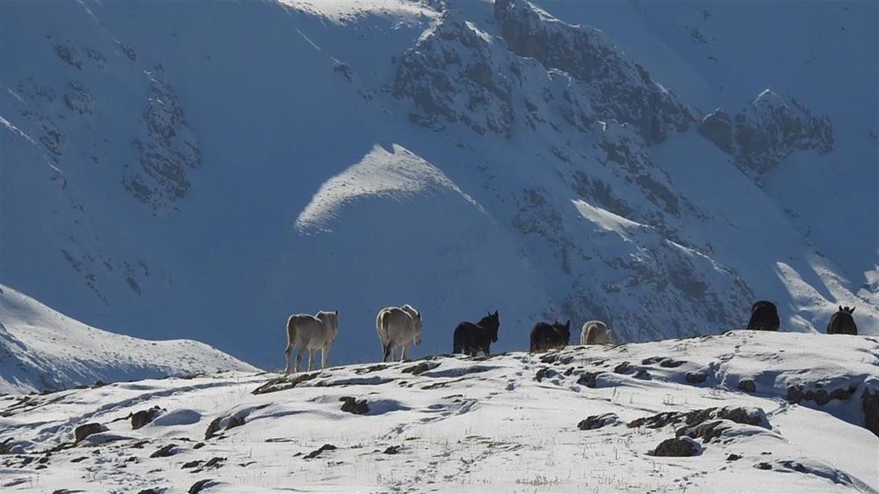 Doğanın zorlu şartlarında hayatta kalan yılkı atları, özellikle kış mevsiminde yem bulmak amacıyla köy ve ilçe merkezlerine yakın olan ovalara inmektedir. Bu durum, onların yaşam mücadelesini gözler önüne seriyor.