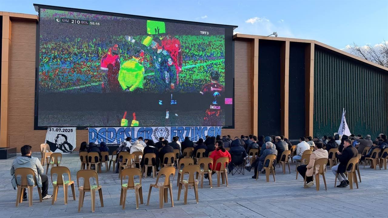 Erzincan'da bulunan Dörtyol Meydanı'nda, sporseverler dev ekrana kurulan izleme alanında bir araya geldi. Ligin 35. haftasında Erzurum'da gerçekleşen karşılaşma, TRT Spor'dan canlı olarak yayınlandı. Bu önemli maçta, çok sayıda vatandaş, komşu il takımı Erzurumspor'a tezahüratlarla destek verdi.