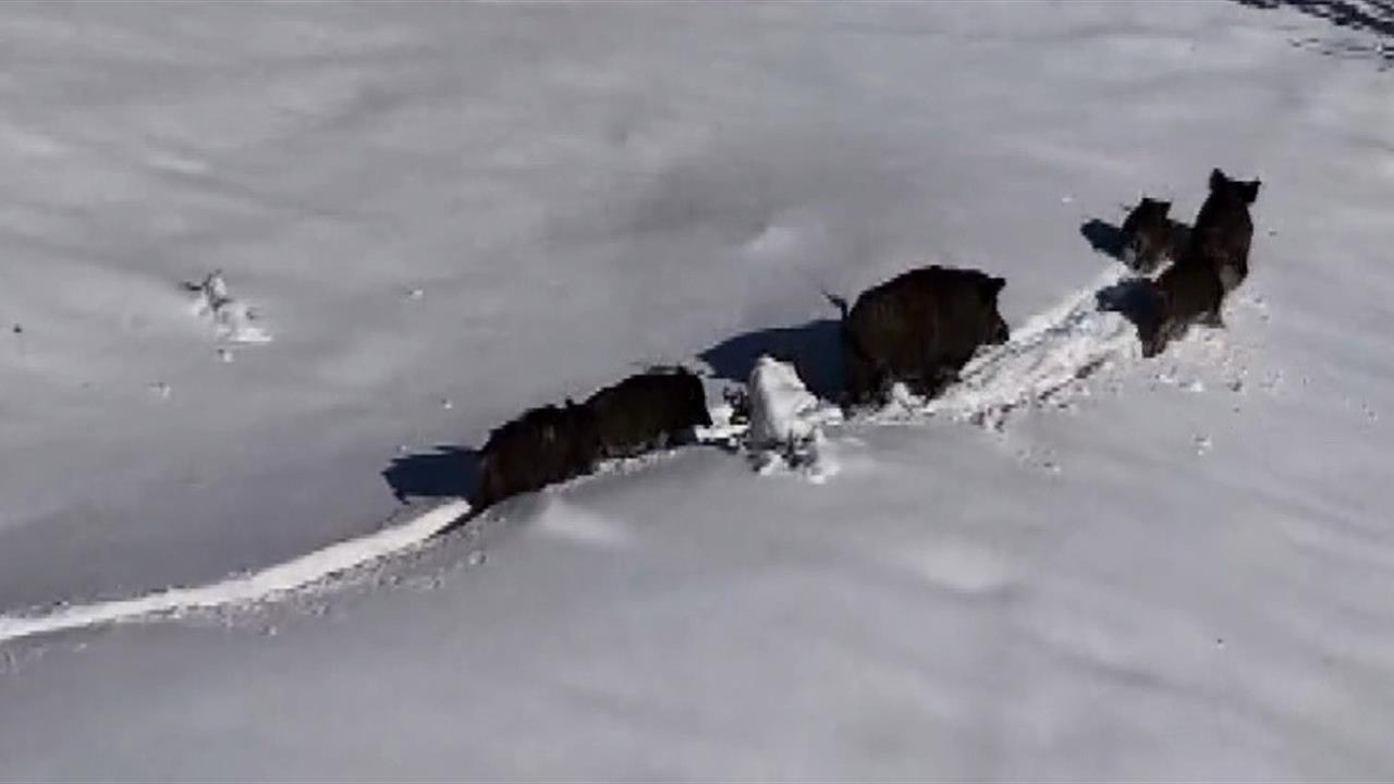 Erzincan merkeze bağlı Kalecik köyü yakınında, kar yağışının ardından ortaya çıkan beyaz örtüde ilerleyen yaban domuzu sürüsü, bir vatandaş tarafından drone ile kaydedildi. Murat Aydemir isimli vatandaş, karla kaplı arazide hareket eden domuzları fark ederek drone ile takibe aldı. Elde edilen görüntülerde, yaban domuzlarının kalın kar örtüsü üzerinde koşarken duraksadığı ve yön değiştirerek birlikte hareket ettiği gözlemlendi.