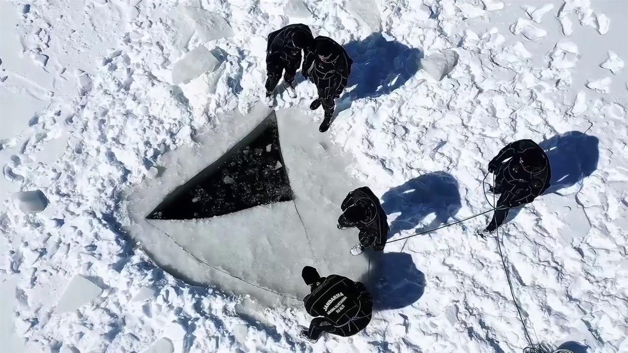 Jandarma Sualtı Arama Kurtarma (SAK) Timi, 2 bin 300 rakımda bulunan Teke Deresi Göleti'nde, buzla kaplı yüzeyi motorlu testere ile keserek dalış yaptı. Bu anlar, Jandarma Genel Komutanlığı'nın sosyal medya hesabından paylaşıldı.