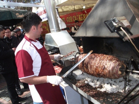 Eskişehir'in Odunpazarı ilçesinde gerçekleştirilen Yöresel Lezzetler Tanıtım Günleri, 72 ilden gelen ürünlerle dolup taştı. Etkinlikte, Erzurum yöresinin meşhur cağ kebabı büyük ilgi gördü. Ziyaretçiler, bu lezzeti 'döner kebabın yan yatmış hali' şeklinde tanımladı. 14 yıldır kebapçılık yapan 27 yaşındaki Erzurumlu usta Hanifi Yüksel, gelenlere cağ kebabının dönerden farklı olduğunu açıklamak zorunda kaldığını belirtti. Cağ kebabının kuzu etinden yapıldığını ve kuyruk yağsız kısmının kullanıldığını ifade eden Yüksel, bu lezzetin Eskişehirliler tarafından beğenildiğini vurguladı.