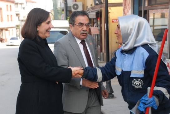 CHP Parti Meclisi Üyesi ve Eskişehir birinci sıra milletvekili adayı Prof. Dr. Gaye Usluer, beşinci sıra milletvekili adayı Metin Tomsuk ile birlikte Odunpazarı bölgesindeki taksici esnafıyla bir araya geldi. Ziyaret sırasında, esnafın sorunlarını dinleyen Usluer, CHP'nin esnaf politikalarını da aktardı. Odunpazarı bölgesinde fırın, lokanta, pastane ve kahvehaneleri dolaşarak vatandaşlarla sıcak diyaloglar kurdu. Usluer, vatandaşların "CHP’yi halkın içinde daha çok görmek istiyoruz" dileklerine, "Artık CHP olarak her zaman halkın içinde olacağız" yanıtını verdi.