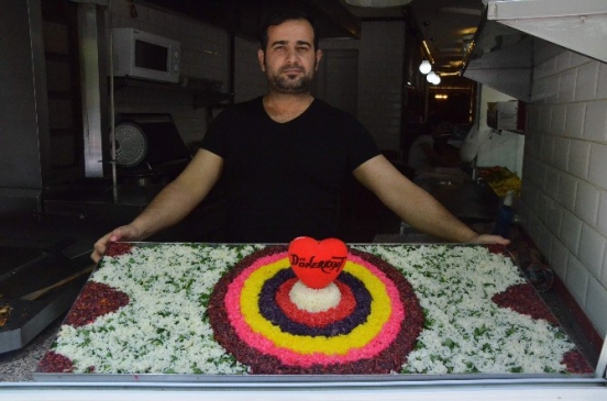 Eskişehir'de dönercilik yapan Murat Eyi, meslektaşlarından farklı bir şekilde öne çıkmayı başarıyor. Pirinç tanelerini kullanarak yaptığı sanatsal süslemeler, çevredekilerin ilgisini çekiyor. Özel günlerde yemek malzemeleriyle çeşitli desenler oluşturan Eyi, dükkanının camında eserlerini sergiliyor. Kendi işini daha iyi tanıtmak amacıyla bu sanatsal çalışmaları yaptığını belirten Eyi, “Bu süslemeleri insanların dikkatini çekmek için yapıyoruz. Meslek aşkım da var. Pirinçlere özel şuruplar ile renk vererek farklı projeler üretiyorum. Daha önce patates de kullandığım çalışmalarım oldu. Özel günlerde, o günün anlamını yansıtan şekiller yapıyoruz. Bu çalışmalarım ortalama yarım saat ile bir saat arasında sürüyor. Görenlerden olumlu tepkiler alıyoruz. İçten gelen bir şey olduğu için severek yapıyorum” dedi.