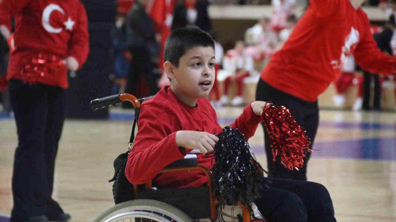 Tüm Türkiye'de olduğu gibi Eskişehir’de de 23 Nisan Ulusal Egemenlik ve Çocuk Bayramı coşkuyla kutlandı. Yenikent Şehit Anıl Gül Spor Salonu'nda gerçekleştirilen etkinlikte, Özkan Halaç Özel Eğitim Meslek Okulu öğrencileri Eskişehirspor marşı ile gösteri yaptı. 13 yaşındaki torunu Yiğit Berat Şen’in gösterisine destek veren anneanne Ayten Şen’in sahne kenarındaki heyecanı dikkat çekti. Torununun figürlerini hatırlatan hareketler ile onu yönlendiren Ayten Şen, mutluluğunu ifade ederek, "Ben de çocuklar gibi 23 Nisan yaşadım, şu anda çocuk oldum" dedi.