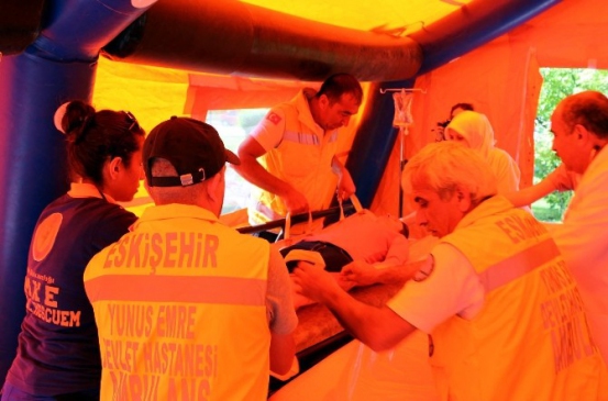 Eskişehir'deki Yunus Emre Devlet Hastanesi bahçesinde gerçekleştirilen tatbikat, Ulusal Medikal Kurtarma Ekibi (UMKE) ve Kamu Hastaneler Birliği Genel Sekreterliği Sivil Savunma Birimi işbirliği ile düzenlendi. Tatbikatta, Kimyasal, Biyolojik, Radyolojik ve Nükleer (KBRN) tehlikelerle mücadele, deprem sonrası kurtarma çalışmaları ve yangın söndürme teknikleri uygulandı.