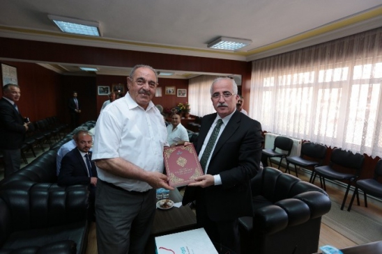 Eskişehir Valisi Güngör Azim Tuna, Hacı Bektaşi Veli Anadolu Kültür Vakfı Başkanı İsmail Kılıç’ı makamında ziyaret etti. Vali Tuna, ziyarette kendisini karşılayan Dernek Başkanı Kamer Ali Durur ve Yönetim Kurulu üyelerine teşekkür etti. Tuna, geçen hafta yeni yönetim kurulunun kendisine yaptığı nezaket ziyaretini hatırlatarak, "Rahmetli İrfan amcayla diyaloğumuz çok iyiydi. İnşallah oluşturulan yeni yönetimle de iyi çalışmalar yapacağımıza inanıyorum. Yaptığımız işlerde insanları ayırmadan, kayırmadan gözetmeliyiz. Hepimiz aynı kökten geliyoruz. Bizler ölünceye kadar birbirimizin kardeşiyiz" dedi. Vali Tuna, Eskişehir'de insanların kardeşçe yaşadığını ve Hacı Bektaşi Veli Anadolu Kültür Vakfı'nın güzel işlerinin devam edeceğine inandığını ifade etti. Ziyaret sonrası Başkan Kılıç, Vali Tuna’yı ağırlamaktan duyduğu mutluluğu dile getirerek, "Bizim hiç kimseyle sorunumuz olmaz. Geçmişten gelen kültürümüze hepimiz sahip çıkmalıyız" şeklinde konuştu. Ayrıca, 2013 Türk Dünyası Kültür Başkenti Ajansı kalıcı eserler projesi kapsamında yenilenen Seyyid Sultan Sücaaddin Veli Türbesi için Vali Tuna’ya teşekkür etti. Ziyaretin sonunda Vali Tuna, günün anısına Başkan Kılıç’a 2013 TDKB Ajansı tarafından yayımlanan prestij kitaplarından oluşan bir set hediye etti.