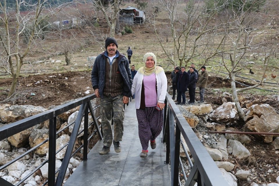 Yıkılan köprü nedeniyle evlerinde mahsur kalan Mehmet Barut ve Fatma Barut çifti ise evleri ile mahalleleri arasında ulaşımı sağlayan yeni köprüden dolayı mutluluk duyduklarını belirterek Başkan Yılmaz'a teşekkür etti.