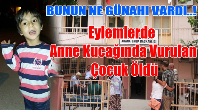 Adana’da ki gösteriler sırasında annesinin kucağında bulunan 3,5 yaşındaki bir kız çocuğu, başına isabet eden kurşunla ağır yaralı olarak kaldırıldığı hastanede hayatını kaybetti.
